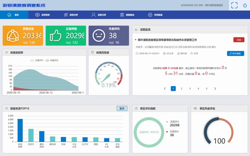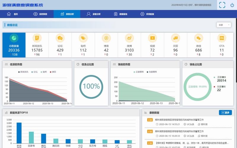 采集主流互聯網渠道上關于旅游景區(qū)、住宿、餐飲等方面的評價數據。得出游客對景區(qū)、酒店、餐飲等主要旅游要素的正面、負面、中性評價。識別各景區(qū)、酒店、餐飲網絡形象變化、市場優(yōu)勢和短板所在。