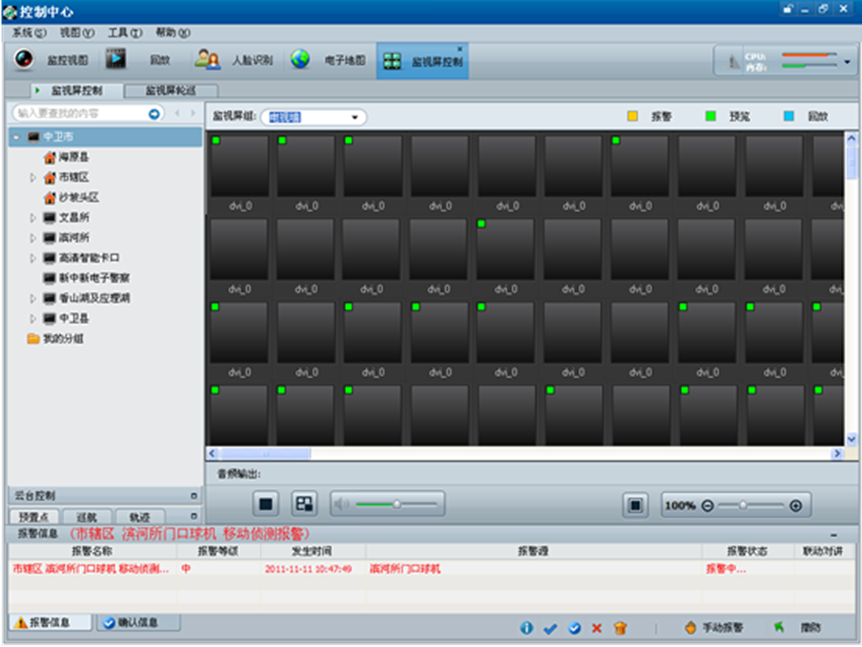 4) 監視屏控制界面與電視墻上可同步顯示視頻;