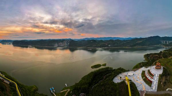 “中國茶?!踅髦椤甭肪€的最后一站是飛龍湖。作為云貴高原第一大湖,飛龍湖總面積為23平方千米,也是“千里烏江畫廊”重要組成部分。湖區攔水壩高232米,是喀斯特巖溶地貌亞洲第一高壩。已開發浪水灣、飛龍寨兩大主要旅游景區,打造了烏江畫廊水上旅游航線。
